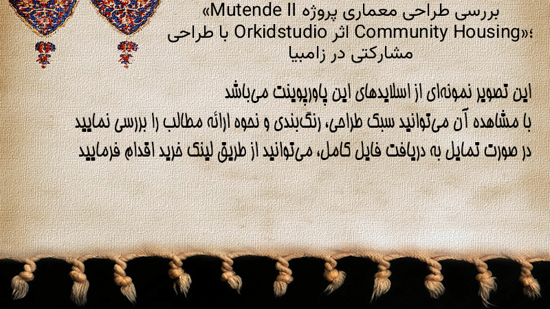 پاورپوینت کامل بررسی طراحی معماری پروژه «Mutende II Community Housing»؛ اثر Orkidstudio با طراحی مشارکتی در زامبیا