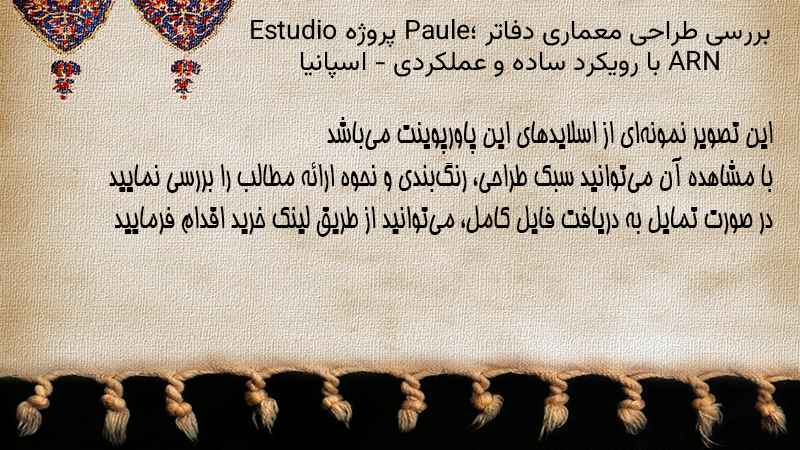 پاورپوینت کامل بررسی طراحی معماری دفاتر Paule؛ پروژه Estudio ARN با رویکرد ساده و عملکردی – اسپانیا