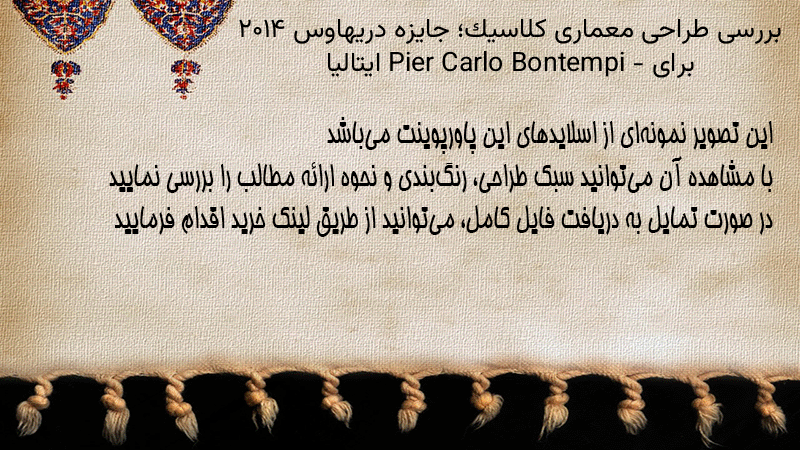 پاورپوینت کامل بررسی طراحی معماری کلاسیک؛ جایزه دریهاوس ۲۰۱۴ برای Pier Carlo Bontempi – ایتالیا