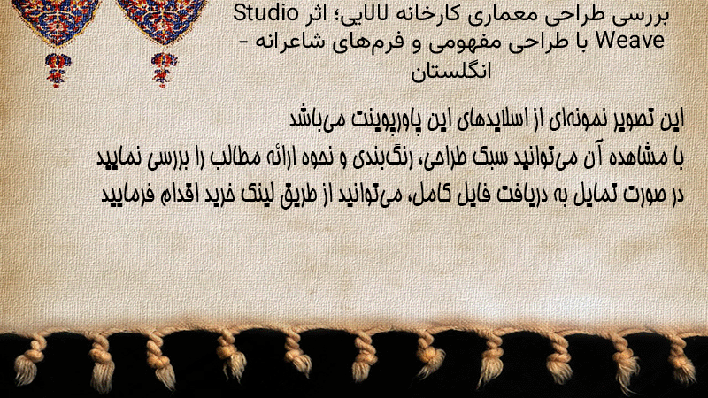 پاورپوینت کامل بررسی طراحی معماری کارخانه لالایی؛ اثر Studio Weave با طراحی مفهومی و فرمهای شاعرانه – انگلستان
