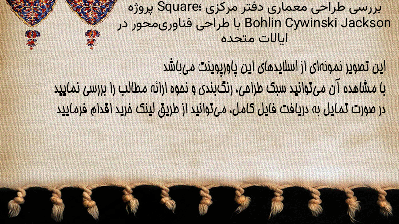 پاورپوینت کامل بررسی طراحی معماری دفتر مرکزی Square؛ پروژه Bohlin Cywinski Jackson با طراحی فناوریمحور در ایالات متحده