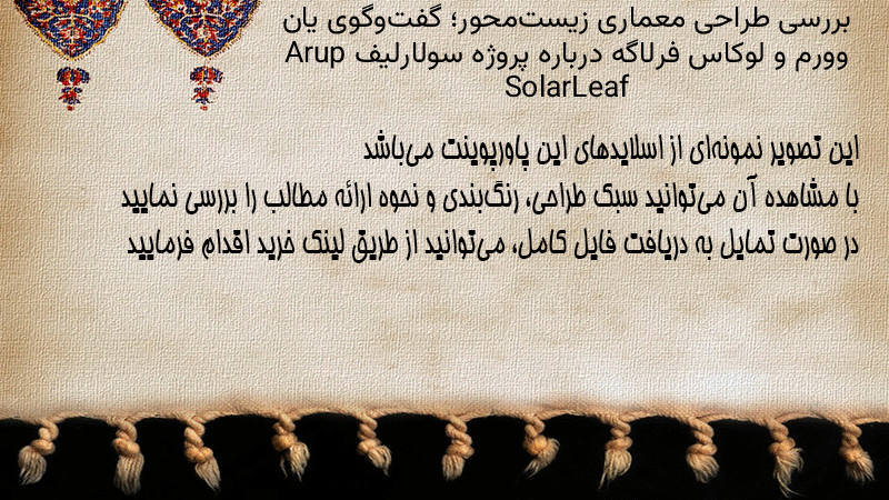 پاورپوینت کامل بررسی طراحی معماری زیستمحور؛ گفتوگوی یان وورم و لوکاس فرلاگه درباره پروژه سولارلیف Arup SolarLeaf