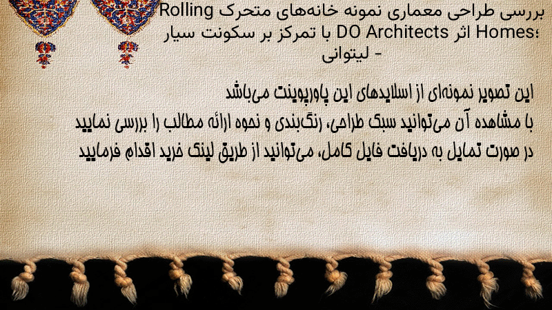 پاورپوینت کامل بررسی طراحی معماری نمونه خانههای متحرک Rolling Homes؛ اثر DO Architects با تمرکز بر سکونت سیار – لیتوانی