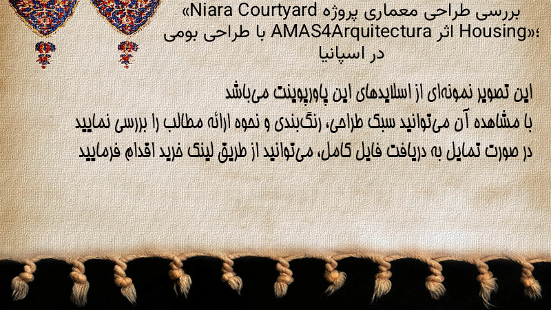 پاورپوینت کامل بررسی طراحی معماری پروژه «Niara Courtyard Housing»؛ اثر AMAS4Arquitectura با طراحی بومی در اسپانیا
