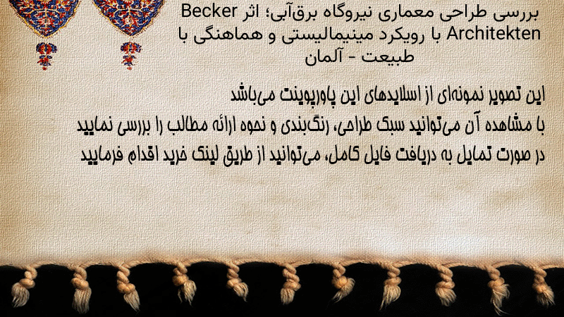 پاورپوینت کامل بررسی طراحی معماری نیروگاه برقآبی؛ اثر Becker Architekten با رویکرد مینیمالیستی و هماهنگی با طبیعت – آلمان