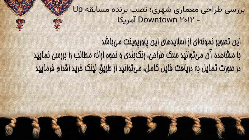 پاورپوینت کامل بررسی طراحی معماری شهری؛ نصب برنده مسابقه Up Downtown ۲۰۱۲ – آمریکا