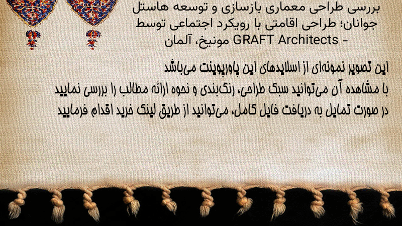 پاورپوینت کامل بررسی طراحی معماری بازسازی و توسعه هاستل جوانان؛ طراحی اقامتی با رویکرد اجتماعی توسط GRAFT Architects – مونیخ، آلمان