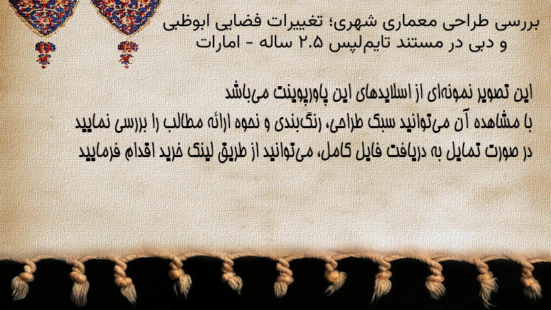 پاورپوینت کامل بررسی طراحی معماری شهری؛ تغییرات فضایی ابوظبی و دبی در مستند تایملپس ۲.۵ ساله – امارات
