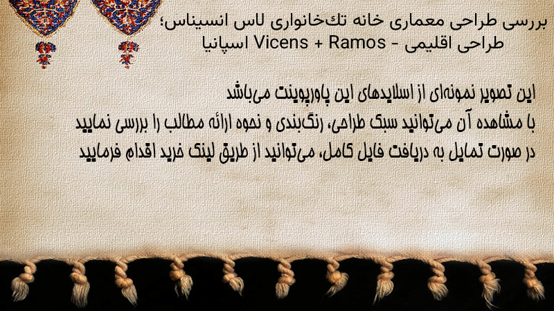 پاورپوینت کامل بررسی طراحی معماری خانه تکخانواری لاس انسیناس؛ طراحی اقلیمی Vicens + Ramos – اسپانیا