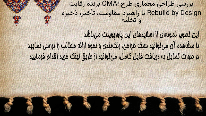 پاورپوینت کامل بررسی طراحی معماری طرح OMA؛ برنده رقابت Rebuild by Design با راهبرد مقاومت، تأخیر، ذخیره و تخلیه