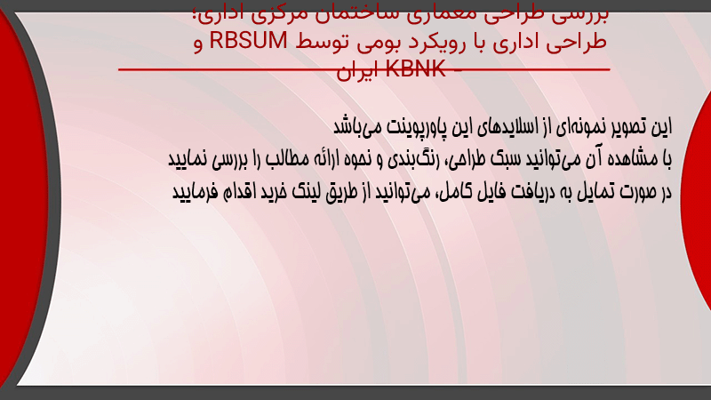 پاورپوینت کامل بررسی طراحی معماری ساختمان مرکزی اداری؛ طراحی اداری با رویکرد بومی توسط RBSUM و KBNK – ایران
