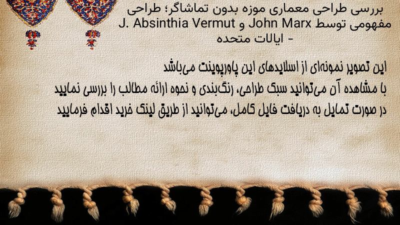 پاورپوینت کامل بررسی طراحی معماری موزه بدون تماشاگر؛ طراحی مفهومی توسط John Marx و J. Absinthia Vermut – ایالات متحده
