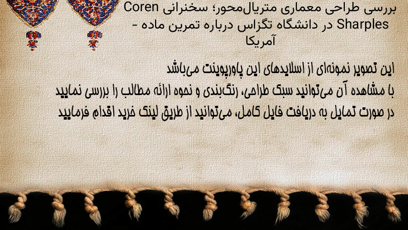 پاورپوینت کامل بررسی طراحی معماری متریالمحور؛ سخنرانی Coren Sharples در دانشگاه تگزاس درباره تمرین ماده – آمریکا