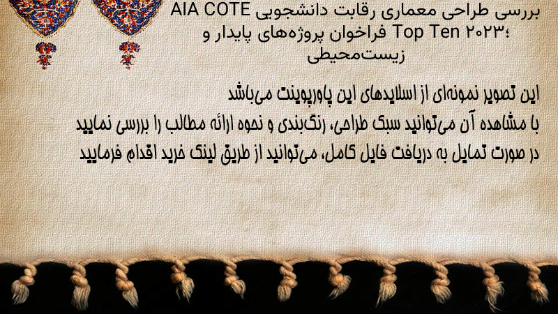 پاورپوینت کامل بررسی طراحی معماری رقابت دانشجویی AIA COTE Top Ten ۲۰۲۳؛ فراخوان پروژههای پایدار و زیستمحیطی