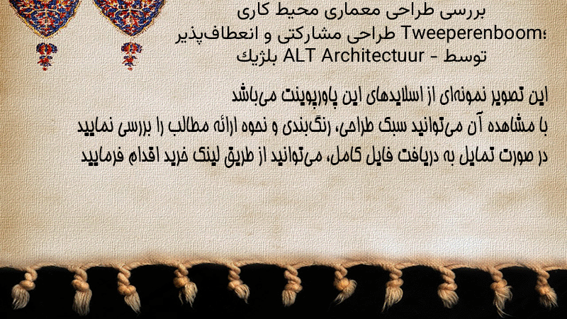 پاورپوینت کامل بررسی طراحی معماری محیط کاری Tweeperenboom؛ طراحی مشارکتی و انعطافپذیر توسط ALT Architectuur – بلژیک