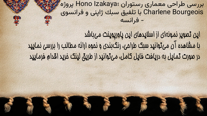 پاورپوینت کامل بررسی طراحی معماری رستوران Hono Izakaya؛ پروژه Charlene Bourgeois با تلفیق سبک ژاپنی و فرانسوی – فرانسه