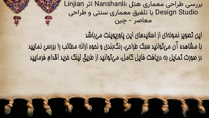 پاورپوینت کامل بررسی طراحی معماری هتل Nanshanli؛ اثر Linjian Design Studio با تلفیق معماری سنتی و طراحی معاصر – چین
