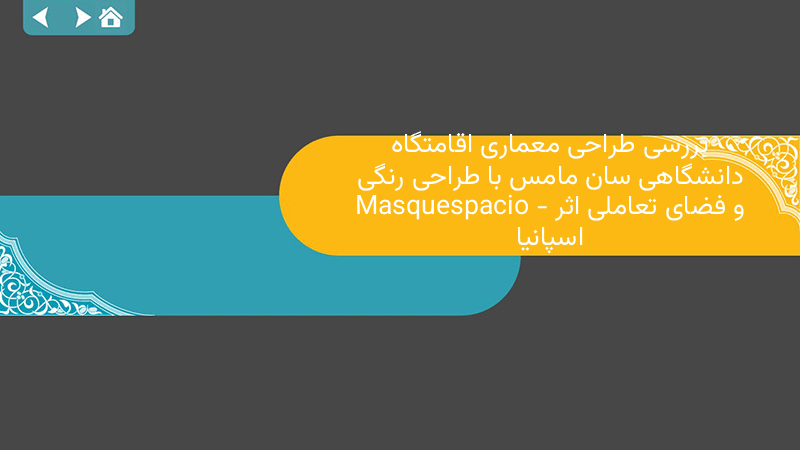 پاورپوینت کامل بررسی طراحی معماری اقامتگاه دانشگاهی سان مامس با طراحی رنگی و فضای تعاملی اثر Masquespacio – اسپانیا