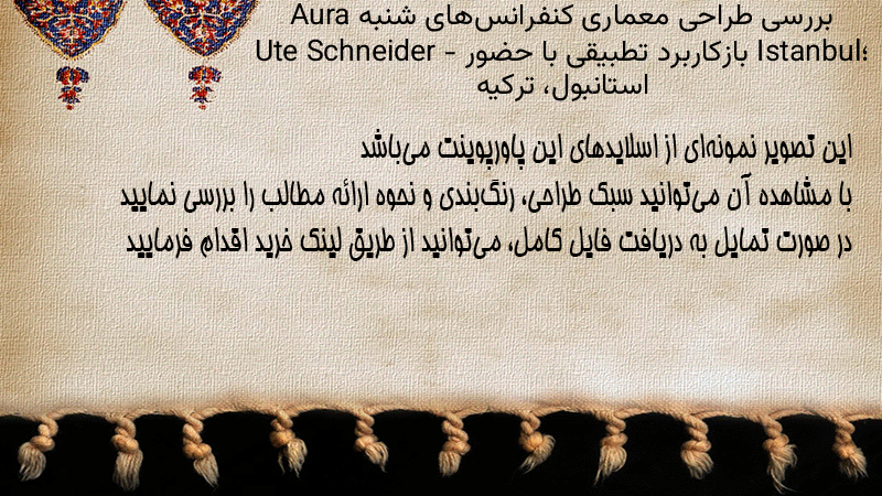 پاورپوینت کامل بررسی طراحی معماری کنفرانسهای شنبه Aura Istanbul؛ بازکاربرد تطبیقی با حضور Ute Schneider – استانبول، ترکیه