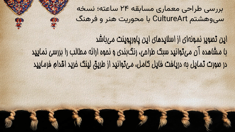 پاورپوینت کامل بررسی طراحی معماری مسابقه ۲۴ ساعته؛ نسخه سیوهشتم CultureArt با محوریت هنر و فرهنگ