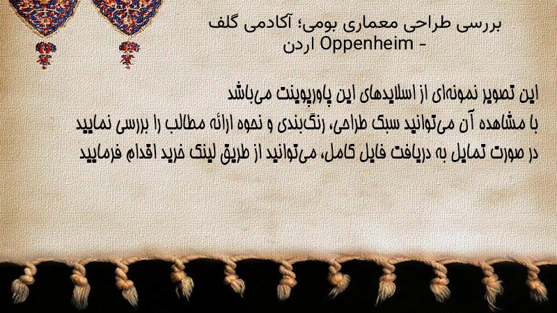 پاورپوینت کامل بررسی طراحی معماری بومی؛ آکادمی گلف Oppenheim – اردن