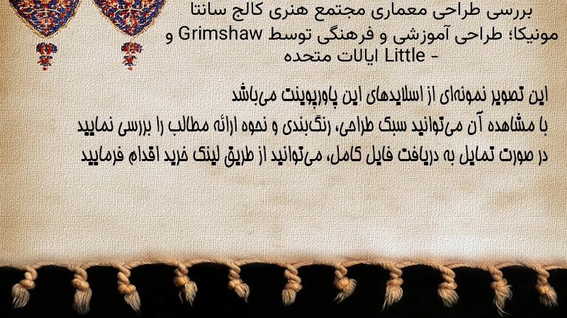 پاورپوینت کامل بررسی طراحی معماری مجتمع هنری کالج سانتا مونیکا؛ طراحی آموزشی و فرهنگی توسط Grimshaw و Little – ایالات متحده