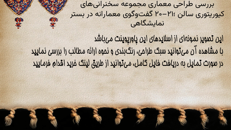 پاورپوینت کامل بررسی طراحی معماری مجموعه سخنرانیهای کیوریتوری سالن ۲۰–۲۱؛ گفتوگوی معمارانه در بستر نمایشگاهی