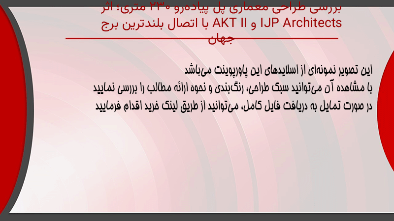 پاورپوینت کامل بررسی طراحی معماری پل پیادهرو ۲۳۰ متری؛ اثر IJP Architects و AKT II با اتصال بلندترین برج جهان