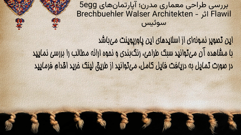 پاورپوینت کامل بررسی طراحی معماری مدرن؛ آپارتمانهای ۵egg Flawil اثر Brechbuehler Walser Architekten – سوئیس