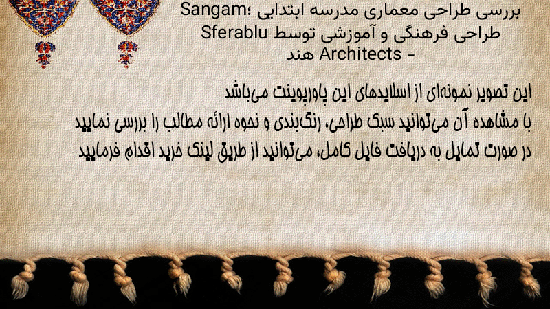 پاورپوینت کامل بررسی طراحی معماری مدرسه ابتدایی Sangam؛ طراحی فرهنگی و آموزشی توسط Sferablu Architects – هند