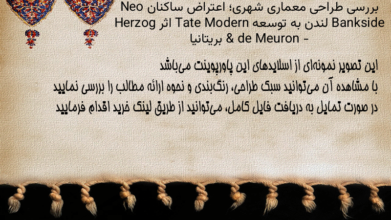 پاورپوینت کامل بررسی طراحی معماری شهری؛ اعتراض ساکنان Neo Bankside لندن به توسعه Tate Modern اثر Herzog & de Meuron – بریتانیا