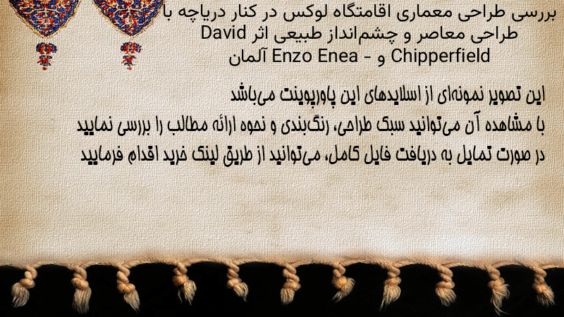 پاورپوینت کامل بررسی طراحی معماری اقامتگاه لوکس در کنار دریاچه با طراحی معاصر و چشمانداز طبیعی اثر David Chipperfield و Enzo Enea – آلمان