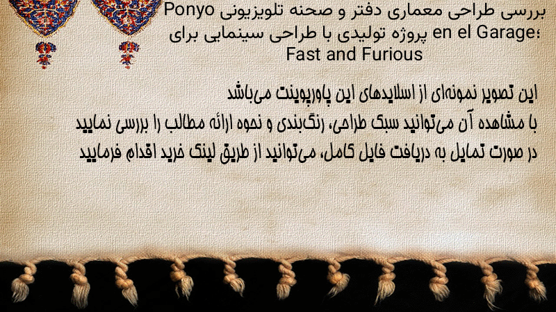 پاورپوینت کامل بررسی طراحی معماری دفتر و صحنه تلویزیونی Ponyo en el Garage؛ پروژه تولیدی با طراحی سینمایی برای Fast and Furious