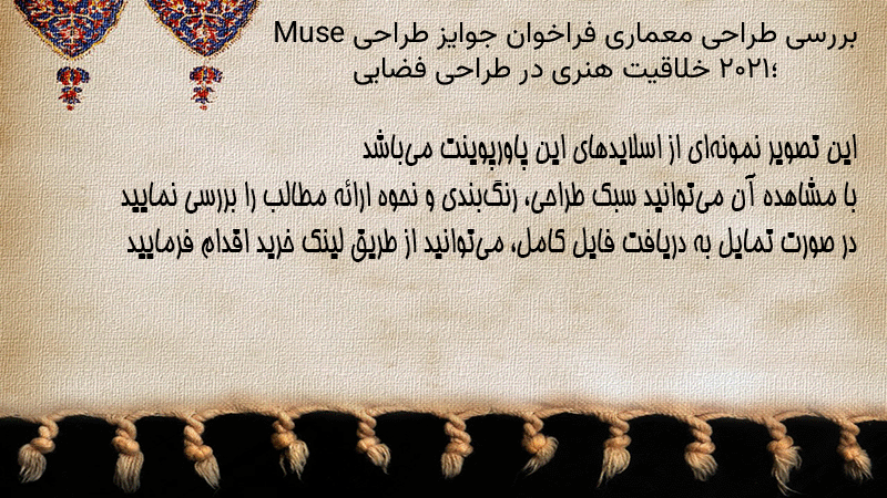 پاورپوینت کامل بررسی طراحی معماری فراخوان جوایز طراحی Muse ۲۰۲۱؛ خلاقیت هنری در طراحی فضایی