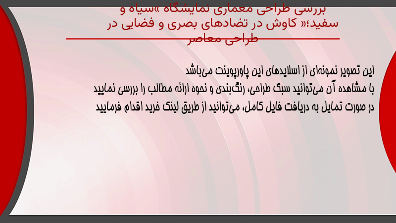 پاورپوینت کامل بررسی طراحی معماری نمایشگاه «سیاه و سفید»؛ کاوش در تضادهای بصری و فضایی در طراحی معاصر