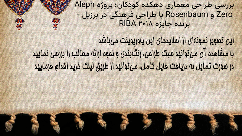 پاورپوینت کامل بررسی طراحی معماری دهکده کودکان؛ پروژه Aleph Zero و Rosenbaum با طراحی فرهنگی در برزیل – برنده جایزه RIBA ۲۰۱۸