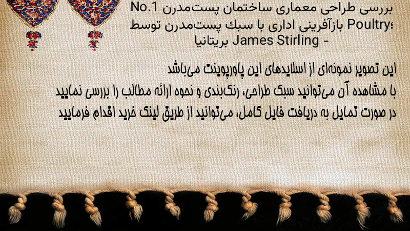 پاورپوینت کامل بررسی طراحی معماری ساختمان پستمدرن No.1 Poultry؛ بازآفرینی اداری با سبک پستمدرن توسط James Stirling – بریتانیا