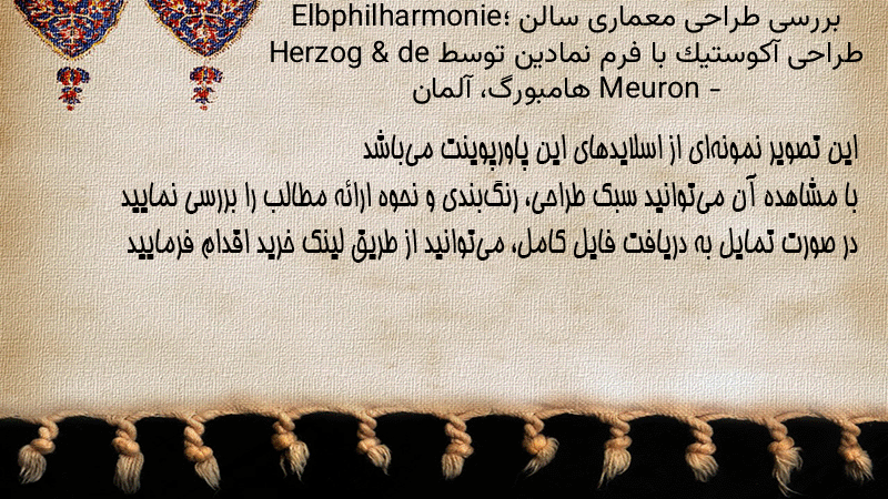 پاورپوینت کامل بررسی طراحی معماری سالن Elbphilharmonie؛ طراحی آکوستیک با فرم نمادین توسط Herzog & de Meuron – هامبورگ، آلمان