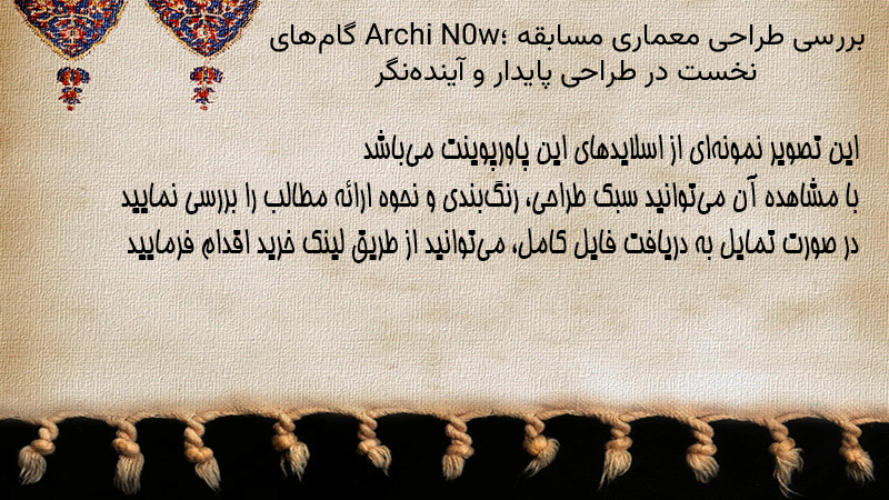 پاورپوینت کامل بررسی طراحی معماری مسابقه Archi N0w؛ گامهای نخست در طراحی پایدار و آیندهنگر