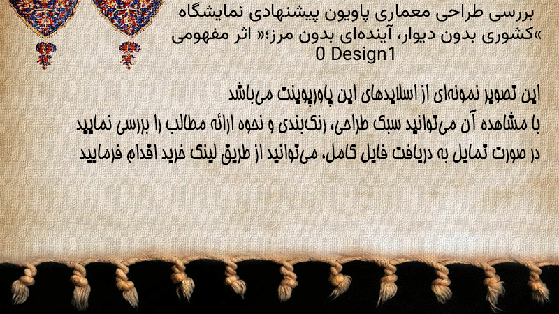 پاورپوینت کامل بررسی طراحی معماری پاویون پیشنهادی نمایشگاه «کشوری بدون دیوار، آیندهای بدون مرز»؛ اثر مفهومی ۱۰ Design