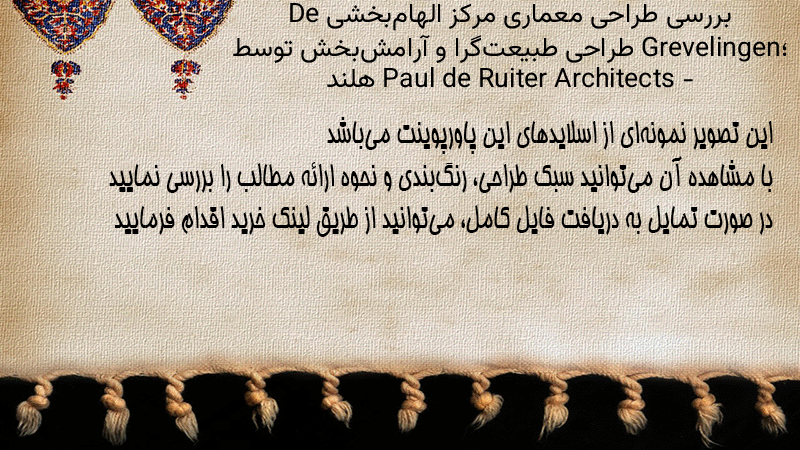 پاورپوینت کامل بررسی طراحی معماری مرکز الهامبخشی De Grevelingen؛ طراحی طبیعتگرا و آرامشبخش توسط Paul de Ruiter Architects – هلند