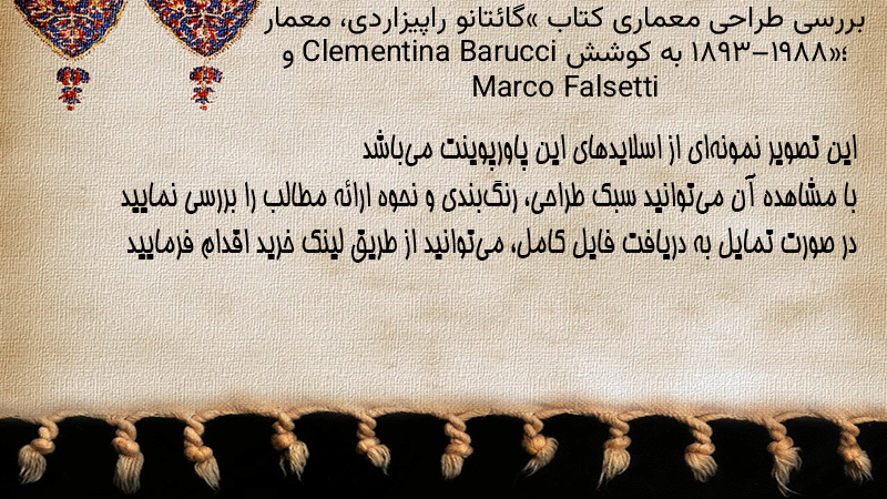 پاورپوینت کامل بررسی طراحی معماری کتاب «گائتانو راپیزاردی، معمار ۱۸۹۳–۱۹۸۸»؛ به کوشش Clementina Barucci و Marco Falsetti