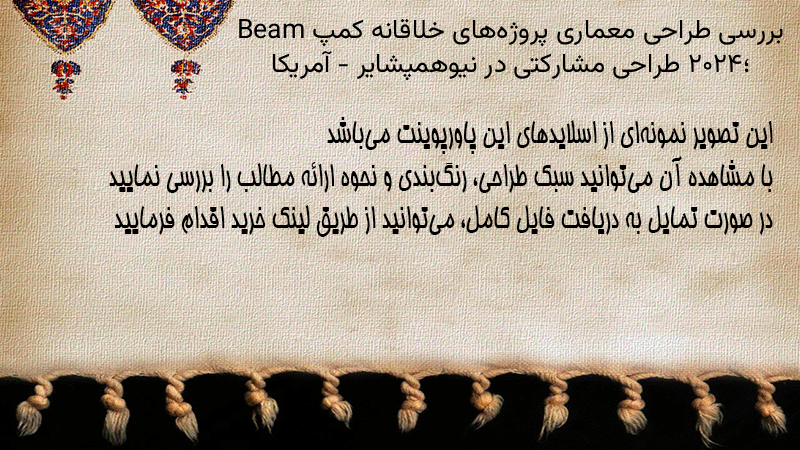 پاورپوینت کامل بررسی طراحی معماری پروژههای خلاقانه کمپ Beam ۲۰۲۴؛ طراحی مشارکتی در نیوهمپشایر – آمریکا