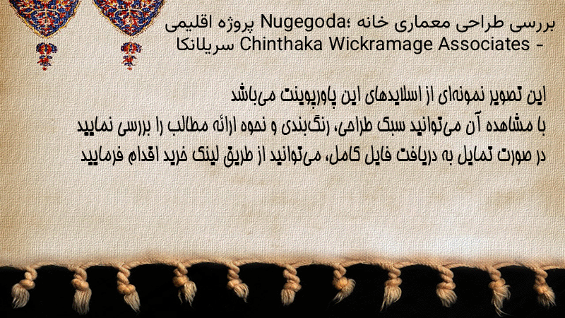پاورپوینت کامل بررسی طراحی معماری خانه Nugegoda؛ پروژه اقلیمی Chinthaka Wickramage Associates – سریلانکا