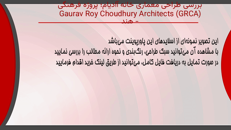 پاورپوینت کامل بررسی طراحی معماری خانه آادیام؛ پروژه فرهنگی Gaurav Roy Choudhury Architects (GRCA) – هند