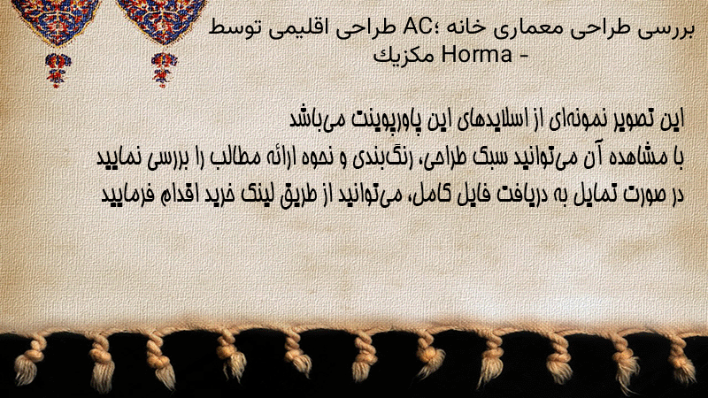 پاورپوینت کامل بررسی طراحی معماری خانه AC؛ طراحی اقلیمی توسط Horma – مکزیک