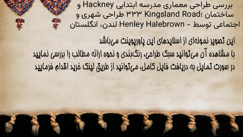 پاورپوینت کامل بررسی طراحی معماری مدرسه ابتدایی Hackney و ساختمان ۳۳۳ Kingsland Road؛ طراحی شهری و اجتماعی توسط Henley Halebrown – لندن، انگلستان