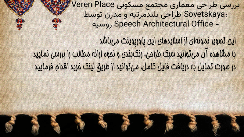 پاورپوینت کامل بررسی طراحی معماری مجتمع مسکونی Veren Place Sovetskaya؛ طراحی بلندمرتبه و مدرن توسط Speech Architectural Office – روسیه