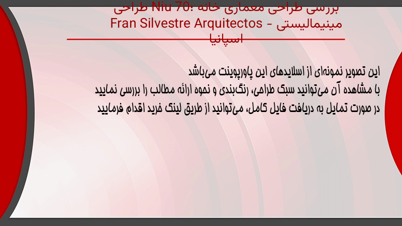 پاورپوینت کامل بررسی طراحی معماری خانه Niu 70؛ طراحی مینیمالیستی Fran Silvestre Arquitectos – اسپانیا