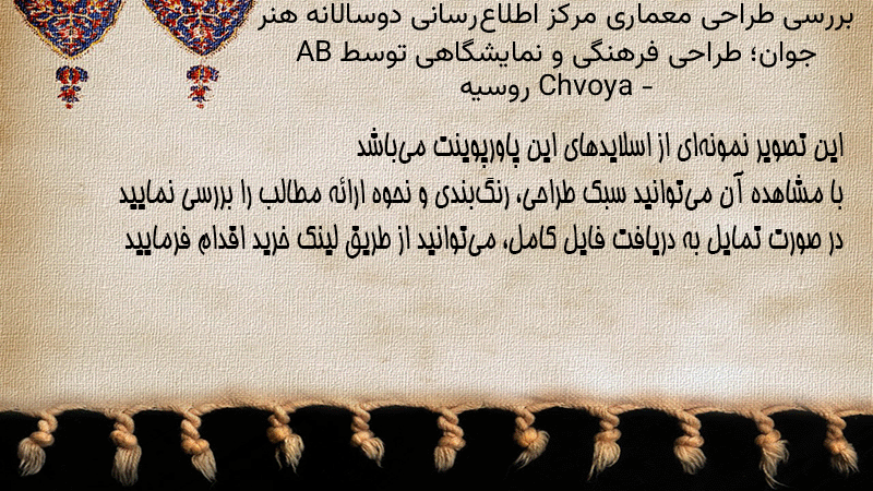 پاورپوینت کامل بررسی طراحی معماری مرکز اطلاعرسانی دوسالانه هنر جوان؛ طراحی فرهنگی و نمایشگاهی توسط AB Chvoya – روسیه